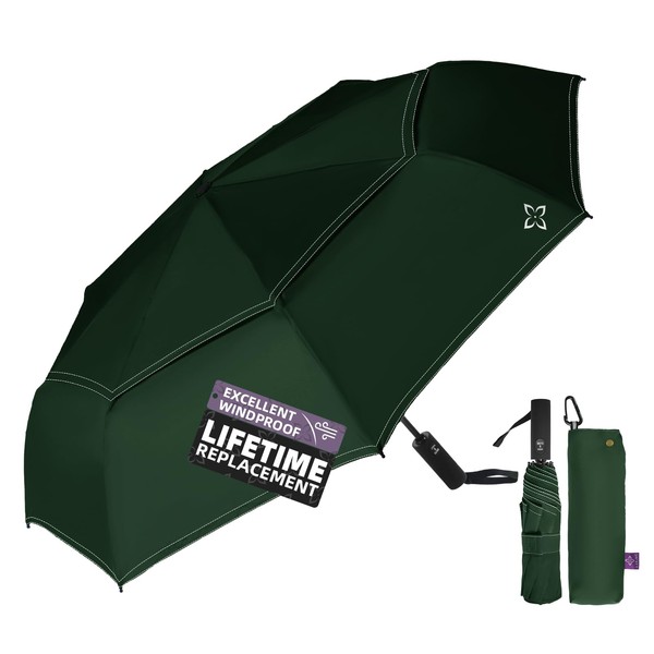 - 【UNIQUE DESIGN & BEAUTIFUL GIFT IDEAS】Our unique reflective thread design enhances safety and style, while a color-matched fabric sleeve with a vintage brass snap securely holds the umbrella, adding elegance with its beveled shape. Available in 12 colors and premium gift packaging, this fashionable travel umbrella makes a perfect gift for all seasons and weather.