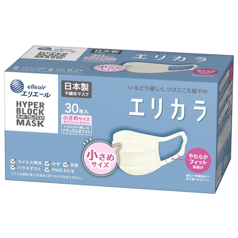 Lilacara Hyperblock Mask, Non-Woven Fabric, Natural White, Small Size, 30 Pieces, PM2.5 Compatible
