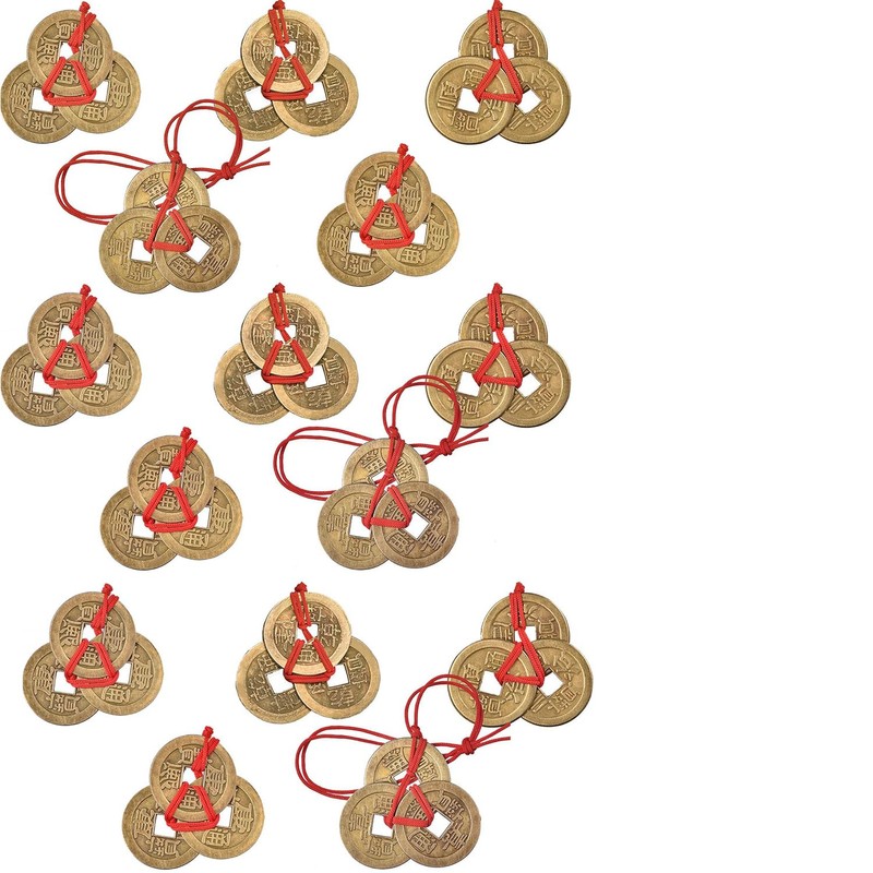 Lilalemon 15 Pack Chinese Fortune Coins, 45pcs Feng Shui Coins, I-ching Traditional Coins with Red String for Wealth and Success, 5 Styles