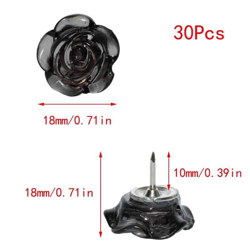 - The exquisite rose has a diameter of 0.7 inch. The total length of the cute push pin is 0.65 inch.