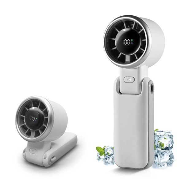 Lilampts Portable Handheld Turbo Fan with Digital Display and 180° Folding Design, 5 Speeds Adjustable USB Rechargeable Hand Held Personal Fan for Travel, Outdoor, Summer Gifts for Women Men(White)