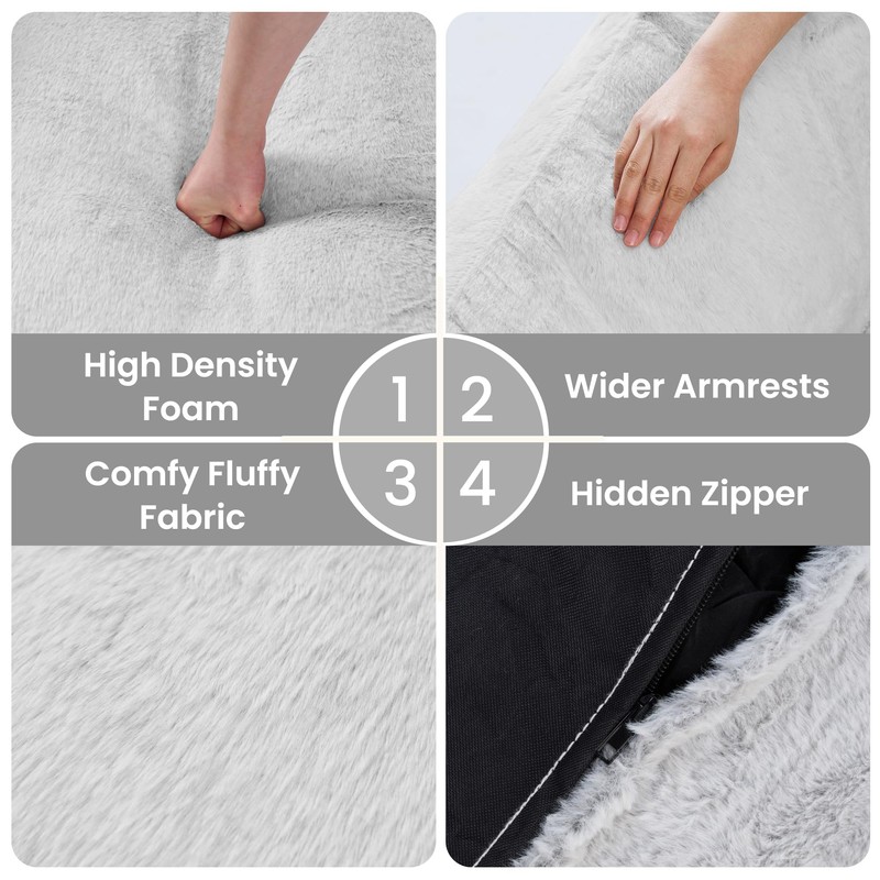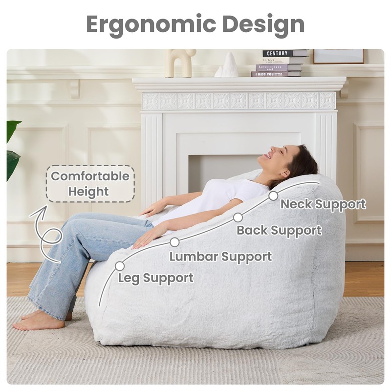 - 【Durable to Use】: Upholstered in skin-friendly faux fur fabric, it ensures the soft feeling but also keeps the warmth and comfort around your body. Anti-pilling texture makes this comfy reading chair convenient to clean and maintain. Just wipe it with a damp towel, this bean bag couch will be tidy as new. And reinforced stitching and puffy fillings prolong its longevity, withstanding long periods of lounging, sitting, lying, leaning.