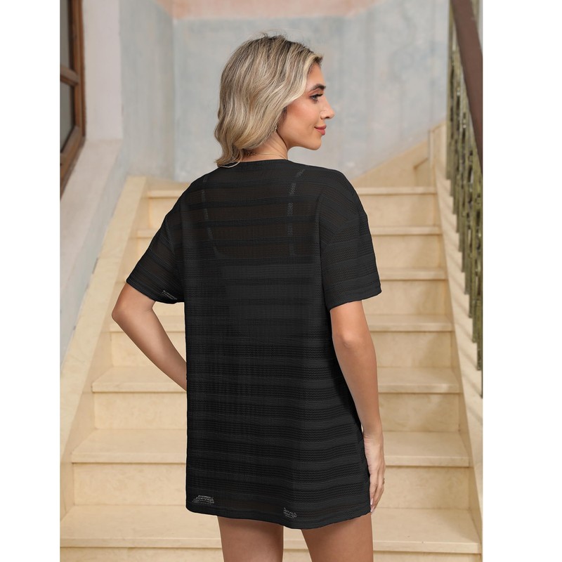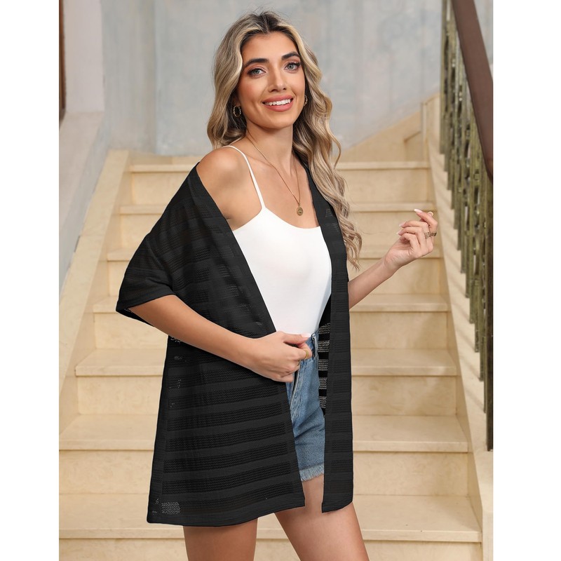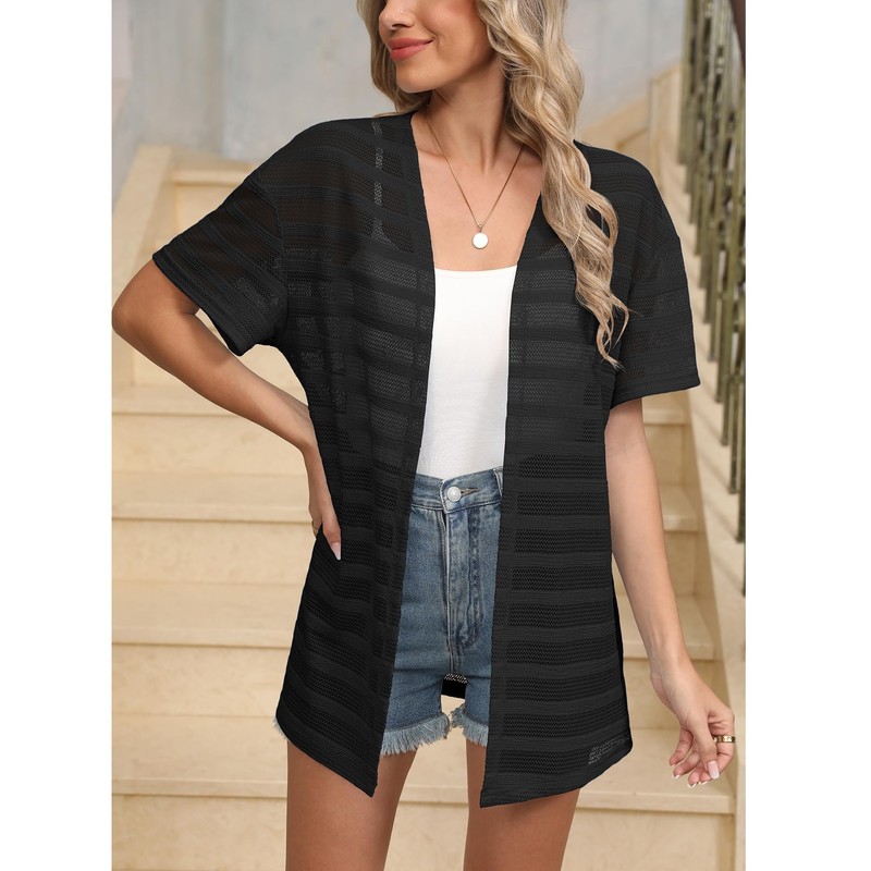 - 【Simple But Fashion Design】The summer cardigans for women feature short sleeve, designed with chic hollow out texture, long enough to cover hip, loose fit style, open front, summer short sleeve cardigans for women.The mesh design enhances breathability, while the meticulously crafted stripes add a layered visual appeal that elevates the overall look.