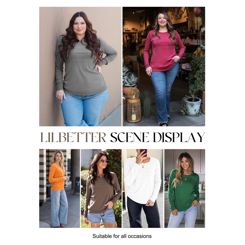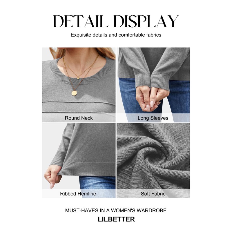 LILBETTER Womens Casual Lightweight Long Sleeve Crewneck Knit Pullover Sweate...