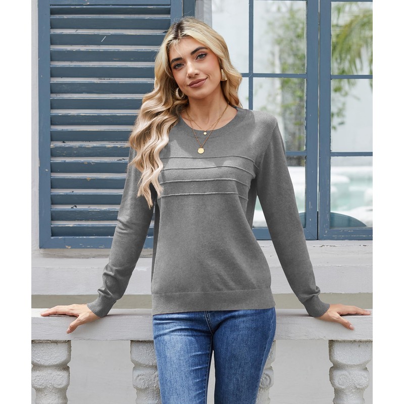 LILBETTER Womens Casual Lightweight Long Sleeve Crewneck Knit Pullover Sweater(Light Grey Medium)