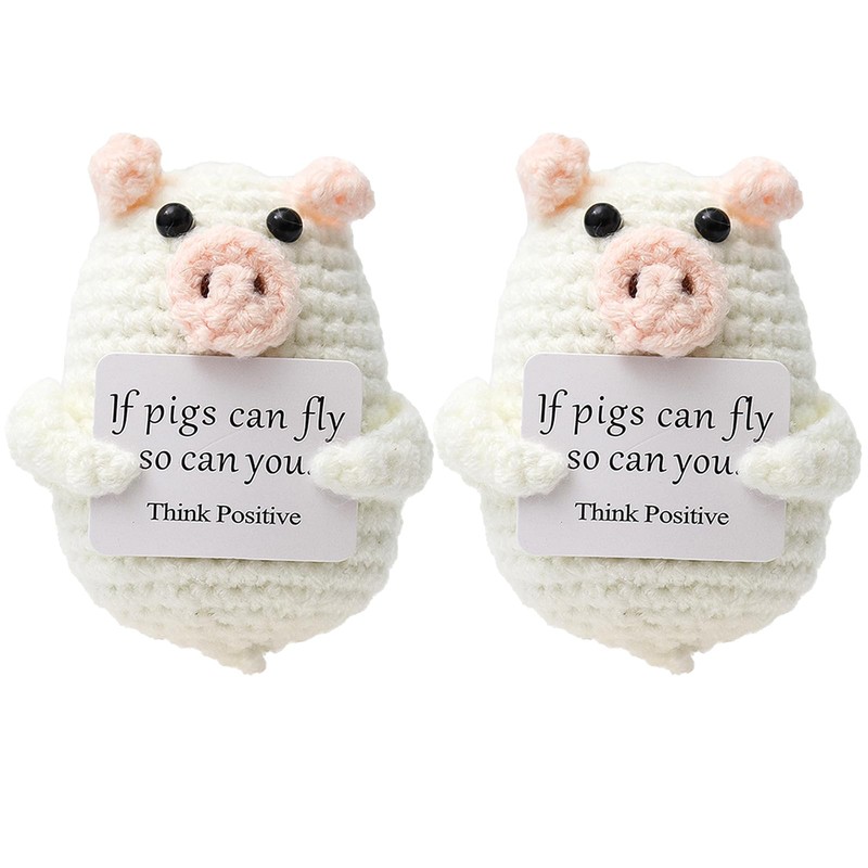 LILELIG Pack of 2 Positive Gifts Lucky Pigs, Interesting Knitted Tiny Pig Doll, Lucky Charm Cuddly Toy, Pocket Hug Pig, Lucky Charm Exam, Courage Exam Stress Gift