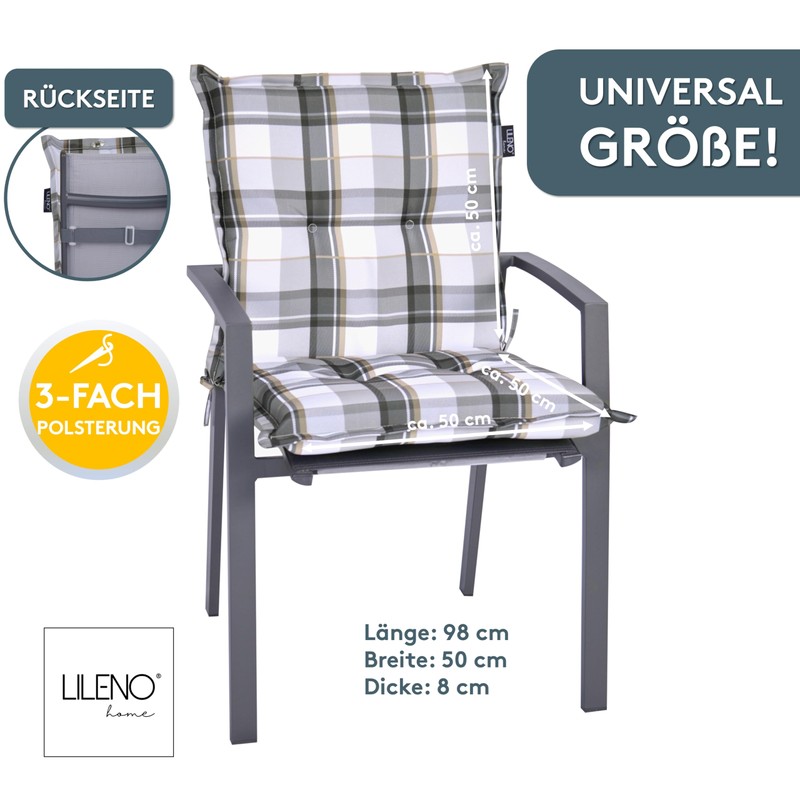 - 100% universal fit – compatible with the standard garden chair, folding chair or wheeled lounger: the LILENO HOME chair cushions for your garden furniture in different sets and colours are suitable for all garden chairs as a seat cover. Depending on the design and thickness, you will find the right set here
