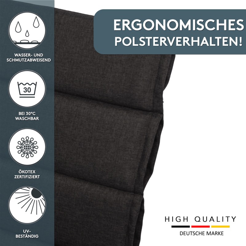 LILENO HOME Garden Chair Cushions in Anthracite [Set of 1 - High-Back] - Comfortable Loungers as Seat Cushions for Garden Furniture - Chair Cushion for Garden Chairs and Folding Chairs