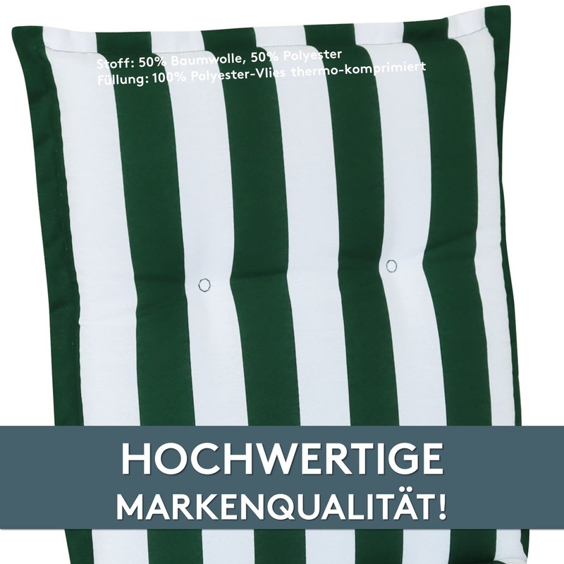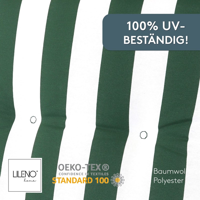 LILENO HOME Garden Chair Cushions in Block Stripes Green [Set of 1 - Lounger] - Comfortable Loungers as Seat Cushions for Garden Furniture - Chair Cushion for Garden Chairs and Folding Chairs