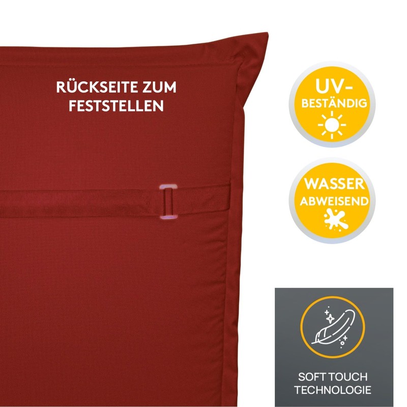 LILENO HOME Mia Garden Chair Cushions [Set of 2 - Low-Back] in Red - Comfortable Loungers as Seat Cushions for Garden Furniture - Chair Cushions for Garden Chairs and Folding Chairs