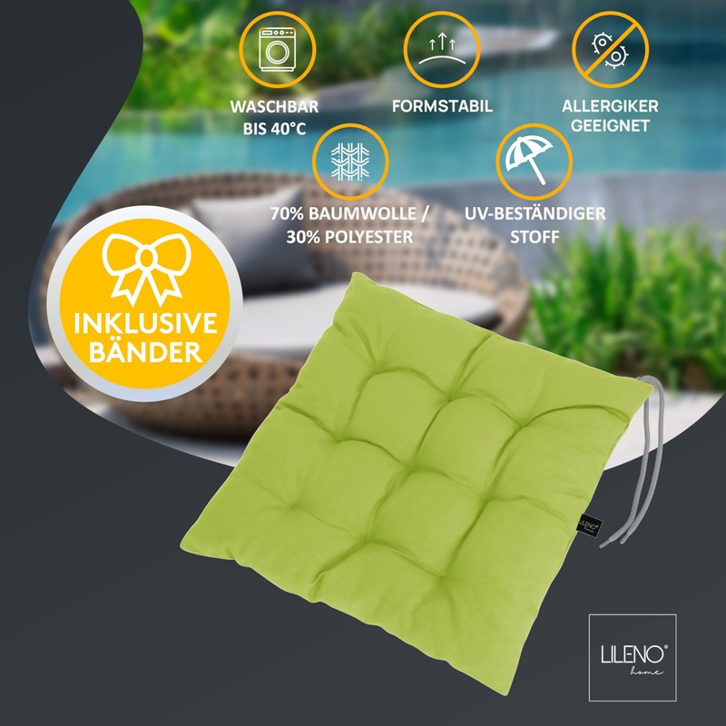 - Quick to set up – the LILENO HOME chair cushions 40 x 40 cm and 38 x 38 cm transform into a feel-good seat cushion in just a few seconds: simply unpack, place on the garden furniture and relax - nothing more is necessary