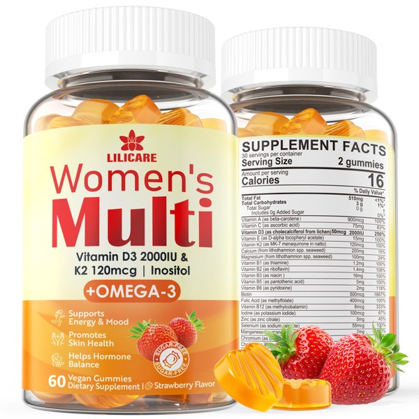 - Comprehensive Vitamin to Fill Nutrient Gaps: Our women's multivitamin gummies are packed with 20+ essential vitamins, minerals, and nutrients to support overall health and wellness. Including biotin and inositol for skin, hair, and nail health; Vitamin D3 and K2 for bone and teeth health; Omega-3 for hormone balance, brain and eye function; and B complex for an energy boost and m??d support. Its a feel-good formula your body will love!