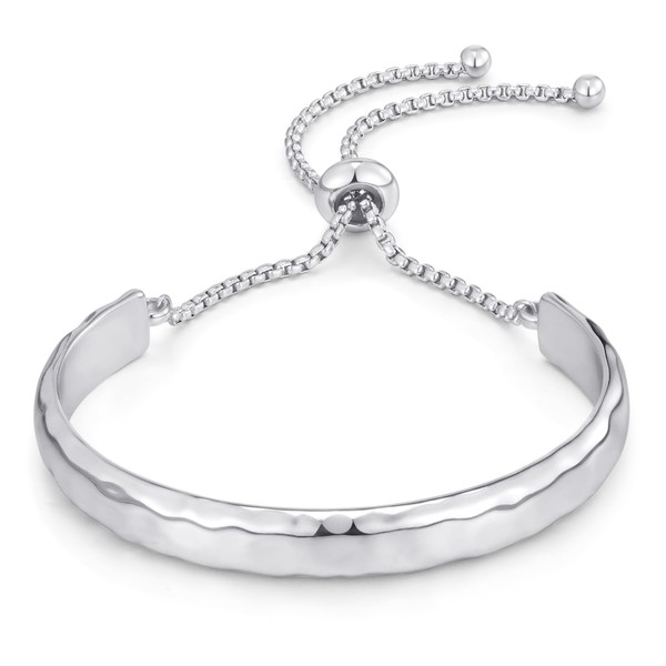LILIE&WHITE Bracelet Women's Adjustable Silver Hammered Bracelet - Hypoallergenic, Fade-Resistant, Polished Sliding Chain Bangle for Modern Elegance