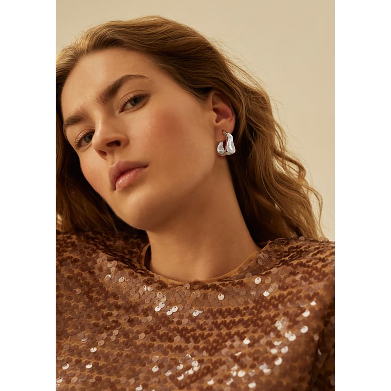 - MODERN ABSTRACT DESIGN These silver stud earrings are characterized by their flowing, abstract shapes that provide a contemporary and elegant look. The minimalist design is versatile and ideal to complement both everyday and evening looks.