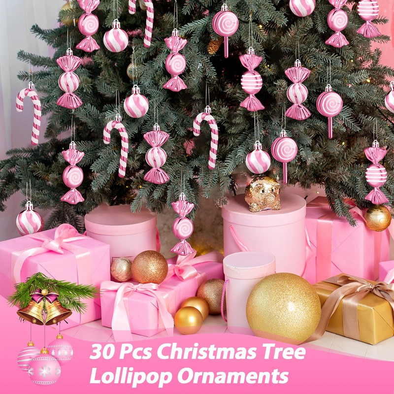 - Vibrant Pink and White Colors: the candy cane Christmas decorations shimmer in cheerful pink and white shades, well reflecting the classic Christmas palette; These vibrant colors effortlessly brighten up your festive decor, enhancing the holiday cheer