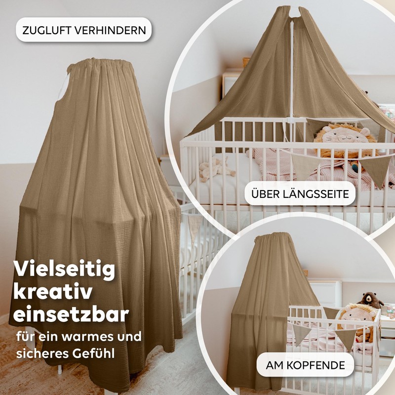 lilimaus Bed Canopy for Baby Bed, Beige – Made of 100% Cotton Muslin Handmade – Girls and Boys Canopy Bed Curtains as Children's Room and Baby Room Decoration – Baby Bed Curtain
