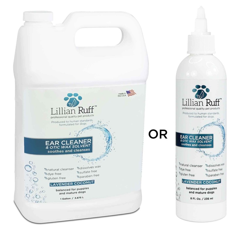 Lillian Ruff Ear Cleaner & Otic Wax Solvent for Dogs with Tea Tree Oil, Bee Propolis & Aloe - Coconut and Lavender Scent - Dissolve Wax and Combat Ear Odors - Safe for Sensitive Ears (Gallon)