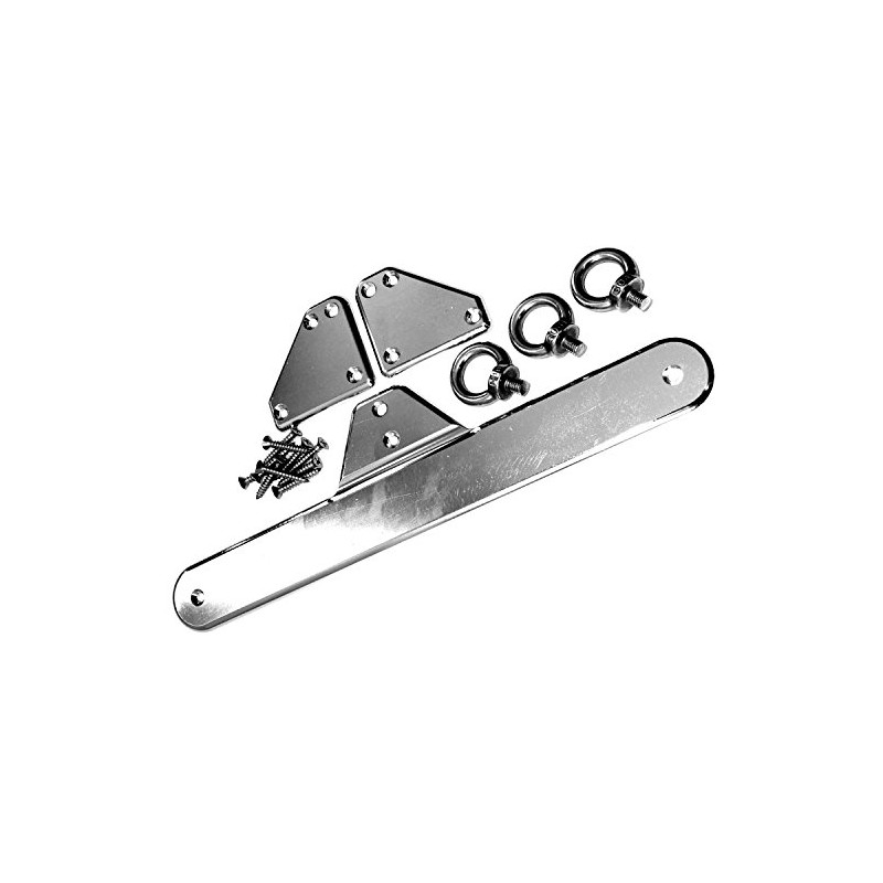 - Contains three stainless steel plates, nine 6mm x 40mm stainless steel screws and three 10mm x 40mm stainless steel eye bolts