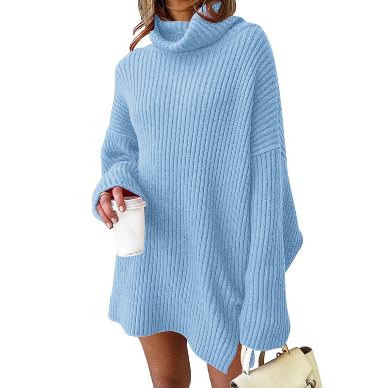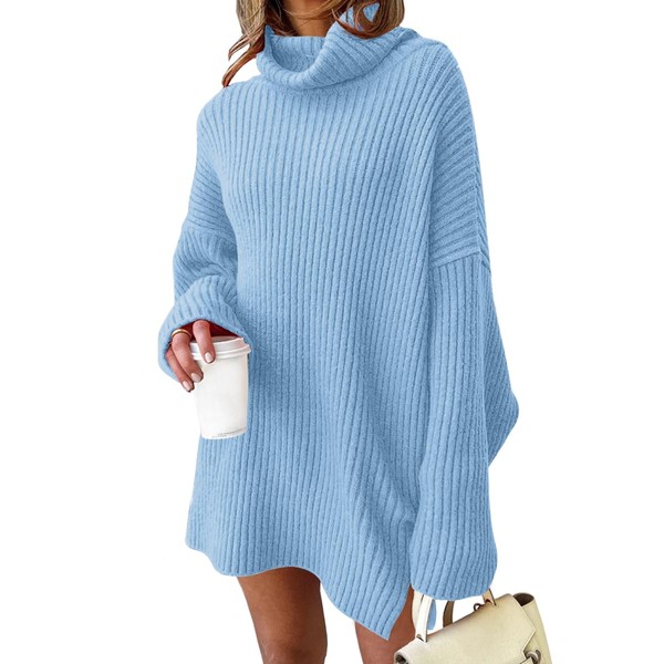 LILLUSORY Womens Turtleneck Oversized Long Sweater Dress 2025 Plus Size Tunic Pullover Knit Fall Dresses Blue 2XL