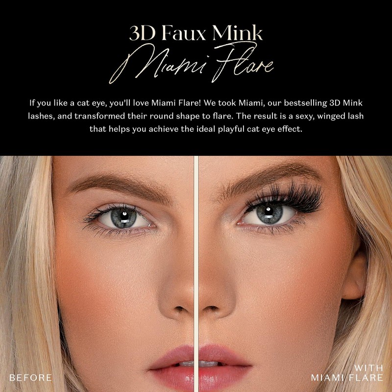 Lilly Lashes Lilly Lashes 3D Miami Flare Faux Mink Strip Eyelashes, False Eyelashes Dramatic Look, Reusable False Lashes, Fake Lashes Pack, Lash Strips with Luxury Silk Like Fibers, No Lash Glue Included