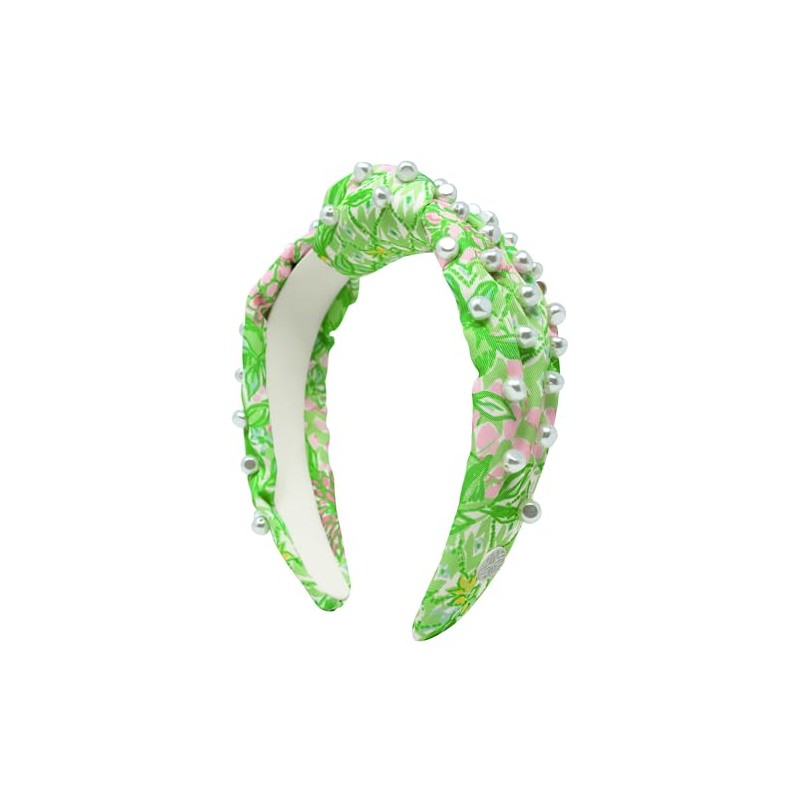 Lilly Pulitzer Colorful Knotted Pearl Headband, Wide Headband, Cute Pearl Embellished Hair Accessories for Women & Girls (Lime Feeling Good)
