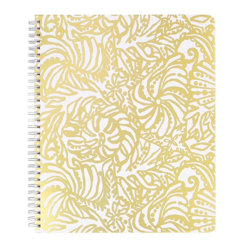 Lilly Pulitzer Gold Large Hardcover Spiral Notebook, 11" x 9.5" with 160 College Ruled Pages, Beach Haven