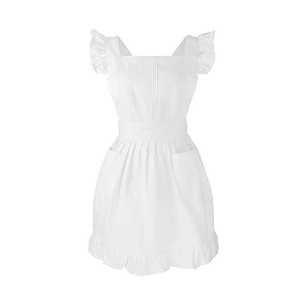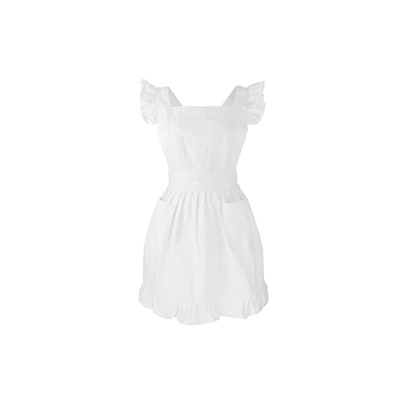 LilMents Kids Retro Adjustable Ruffle Apron Kitchen Baking Maid Costume (White)