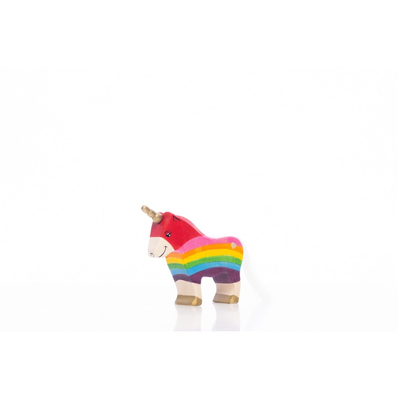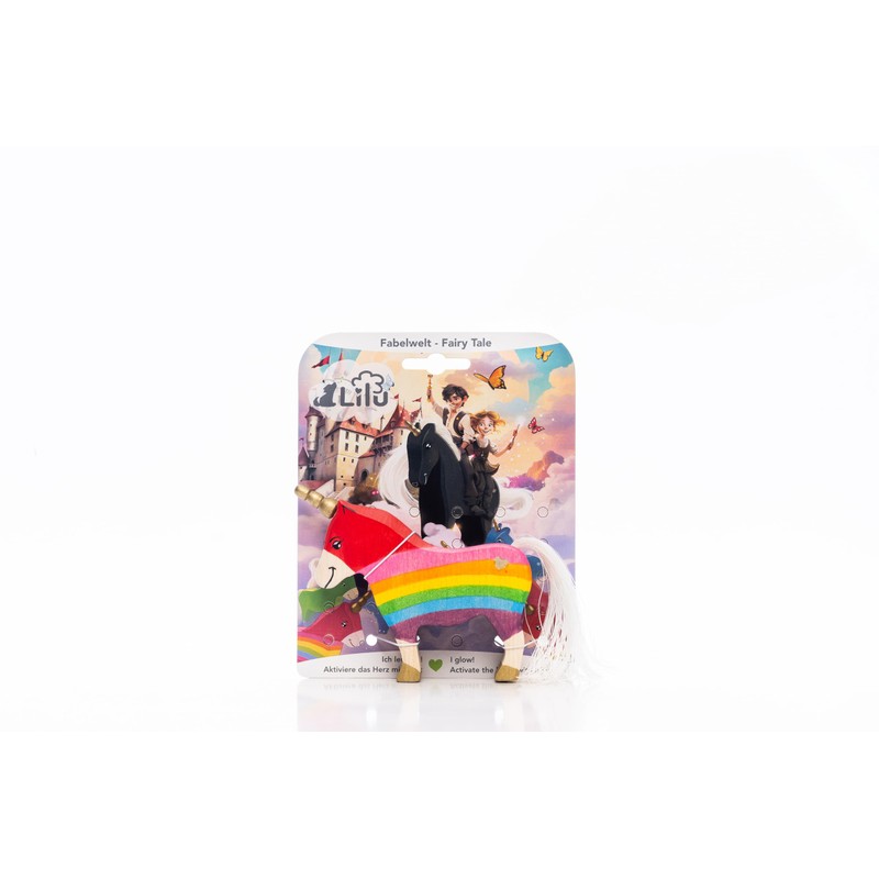 Lilu® Unicorn Pony Mare with Luminous Heart, Mane and Tail, Fabulous World Wooden Animals, Hand-Painted, Wooden Toy Made of FSC® Wood, EN71 and Dekra Certified Toy Figure for Children (Rainbow)