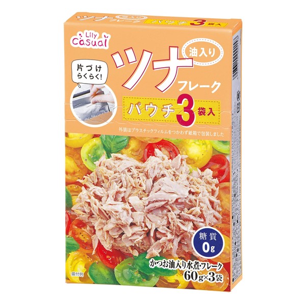 Lily Casual Bonito Tuna Flakes, Boiled in Water, Pouches (2.1 oz (60 g) x 3 Packs, 4 Packs