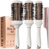 Lily England Round Hair Brush Set, 4 Pieces Professional Blow Dry Kit with 3 Round Brushes and Comb for Styling, Beauty Gift Sets for Women