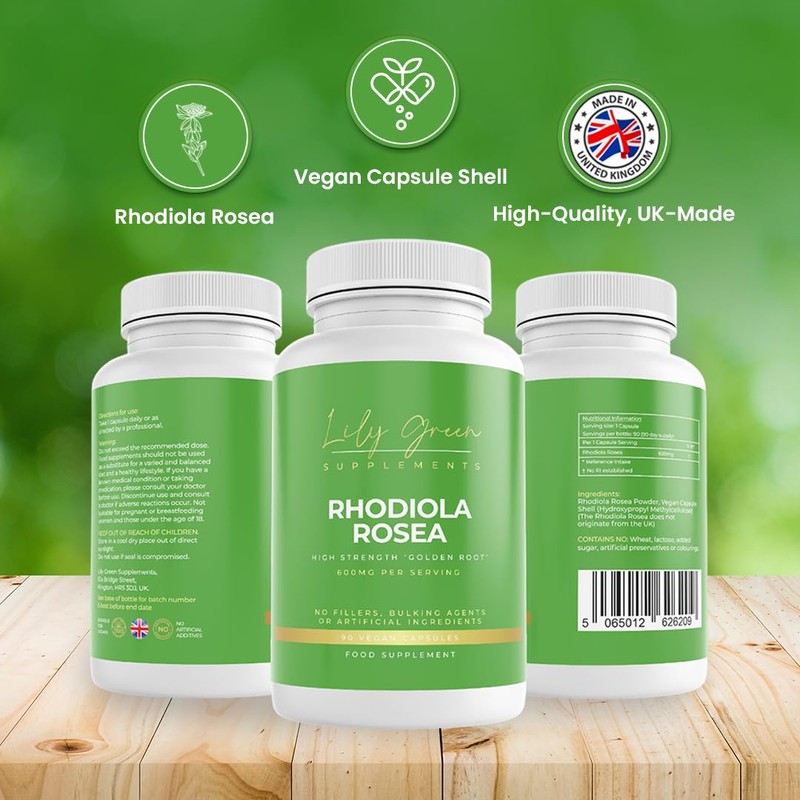 • Pure Ingredients: Lily Green's Rhodiola Rosea capsules are made with high-quality, pure ingredients. These vegan, non-GMO capsules are free from soy, dairy, wheat, preservatives, and artificial fillers. Produced in an ISO-certified UK facility, they are also Kosher and third-party tested for quality.