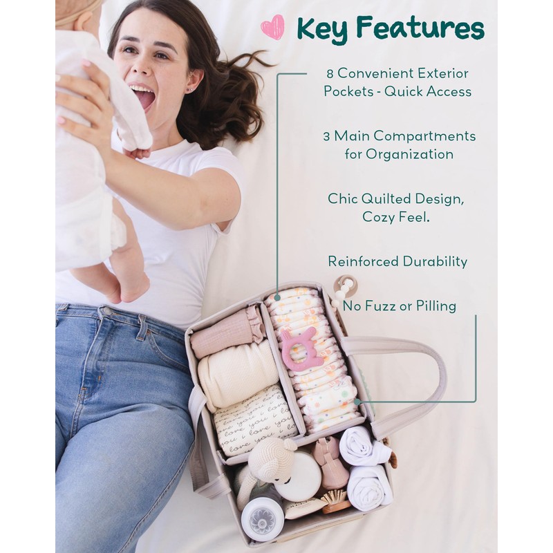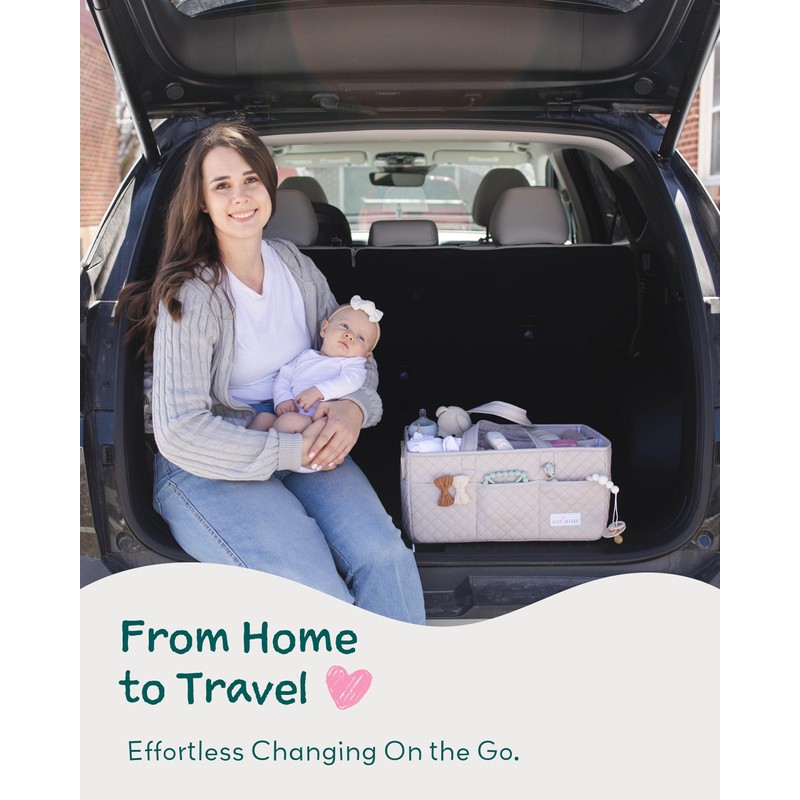 Lily Miles Baby Diaper Caddy Organizer, Quilted Nursery Storage Organizer for Newborn Essentials and Diaper Changing Station, Gift for Baby Shower and Registry Must-Have (Soft Sand)