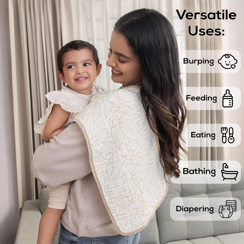 - Versatile and Practical: Beyond being great burp cloths, they can also be used as a baby washcloth, baby face towel, adult face towel, reusable baby wipes, a diaper changing mat, or even as a breastfeeding cover.