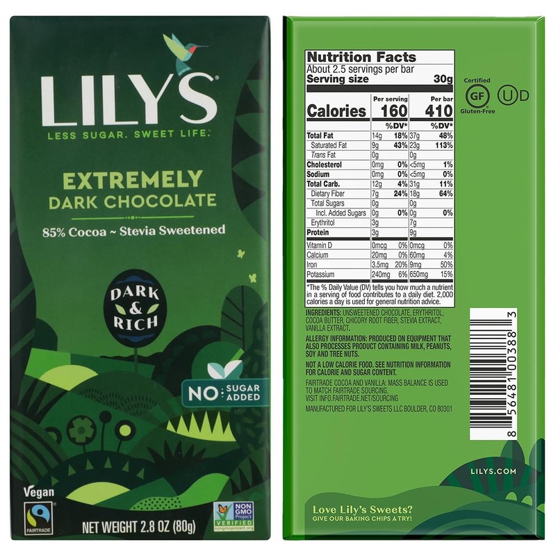- KETO & LOW-CARB FRIENDLY – These Lily’s chocolate bars fit perfectly into keto and low-carb diets, making them a must-have for chocolate lovers seeking a zero sugar dark chocolate option.