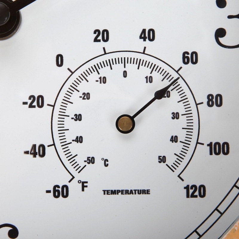 • BUILT IN THERMOMETER AND HYGROMETER: This Hanging Wall Clock has been designed with a built-in thermometer and hygrometer. The thermometer can measure temperatures from -60 to 120 degrees Fahrenheit while the hygrometer can measure humidity from 0% to 100%. This piece is great for outdoor use in the garden, backyard, or by the pool!