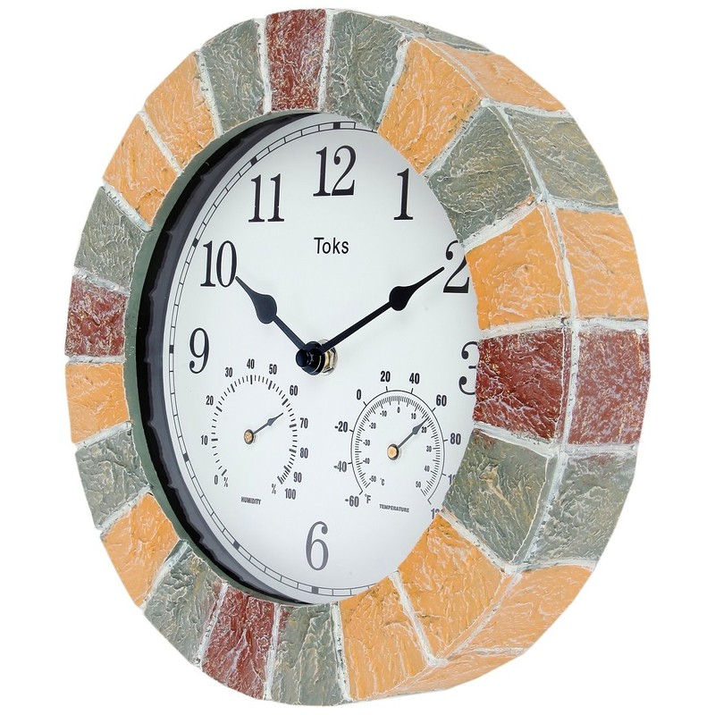Lily's Home Hanging Wall Clock, Includes a Thermometer and Hygrometer and is Ideal for Indoor and Outdoor Use, Faux-Stone (10 Inches)