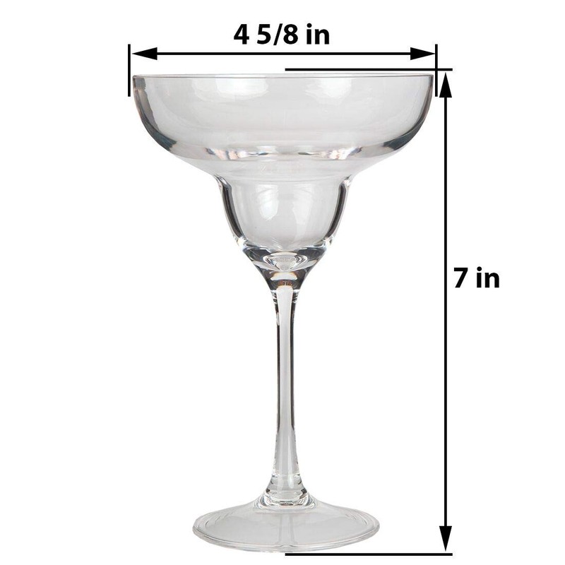 - GREAT FOR PARTIES: No longer serve your guests with unattractive plastic. Shatterproof glasses are both elegant and long-lasting. The Unbreakable Margarita Glasses from Lily's Home come in a set of four glasses, and each holds up to X ounces of your favorite Margarita or cocktail.