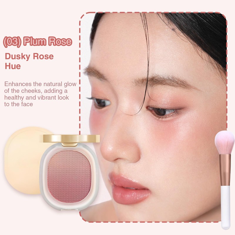 Lilyloria Matte Face Blush Powder for Cheeks with Brush Blendable Long-wear Olive complexion Talc-free (03) Plum Rose