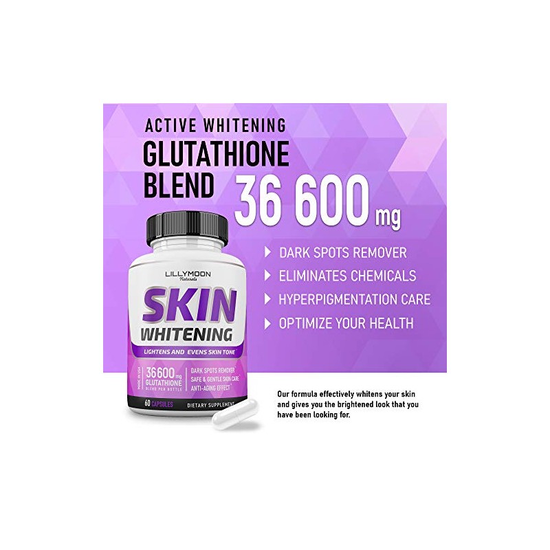 LILYMOON Pldoras blanqueadoras de glutatin pldoras para aclarar la piel, frmula para blanquear la piel, pastillas para blanquear glutatin con...