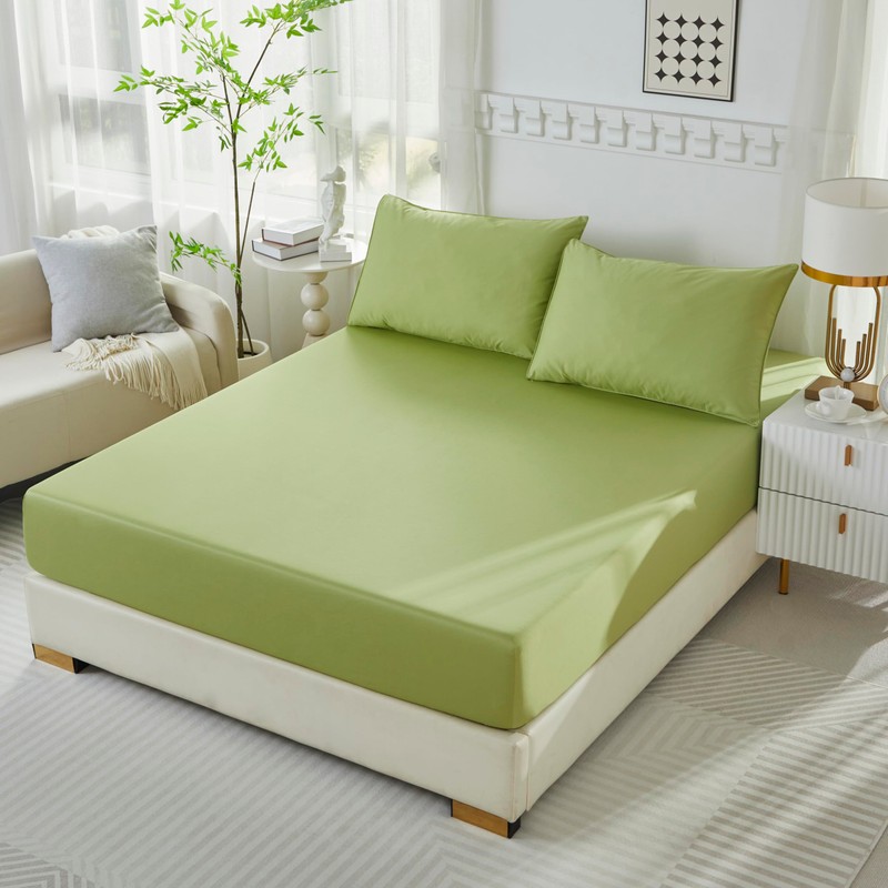 LILYPEACH Solid Fitted Sheet Only, 100% 600 Thread Count Egyptian Cotton Fitted Sheet with Two Pillowcases (Green, King (U.S. Standard))