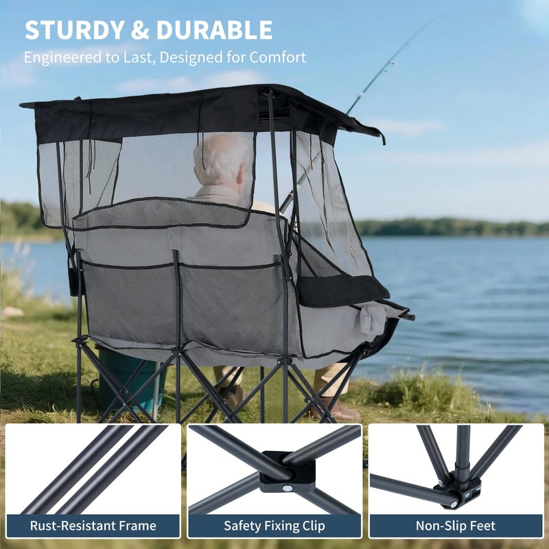 - Heavy Duty And Durable: Built with reinforced steel frame, extra center support for enhanced stability, and durable 600D Oxford fabric, this outdoor camping chair with canopy can support up to 600 lbs and provides reliable, long-lasting use. This oversized camping chair is built to last