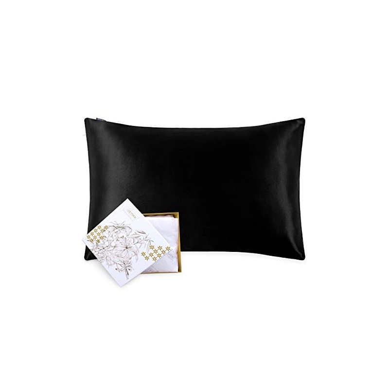 LilySilk Silk Pillowcase for Hair and Skin-100% Mulberry Silk 19 Momme Both Sides Silk Bed Pillow Cover with Hidden Zipper, 1 Pc (King Size, 20''x36'', Black)