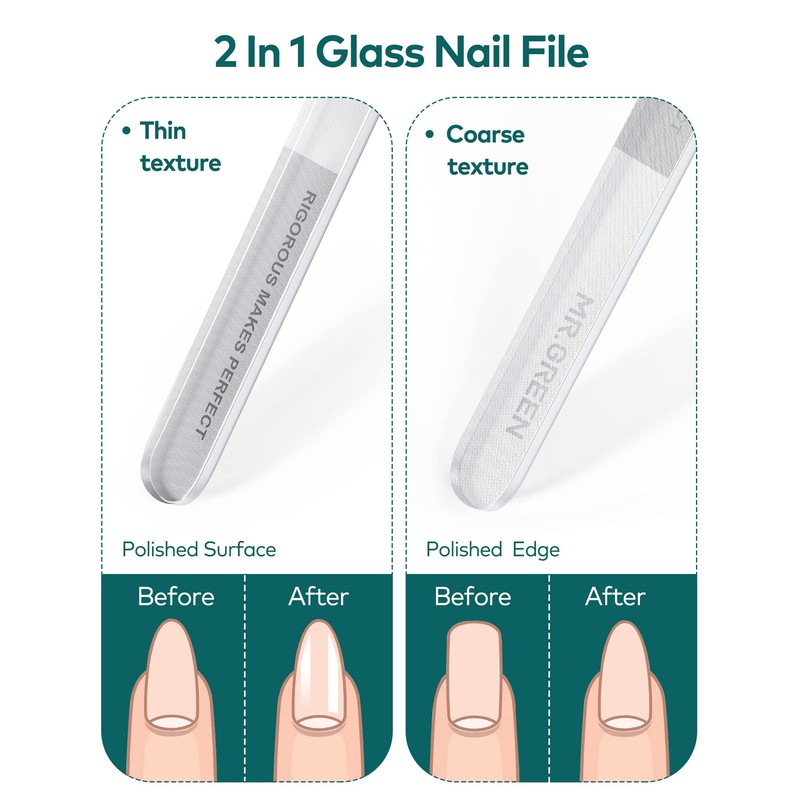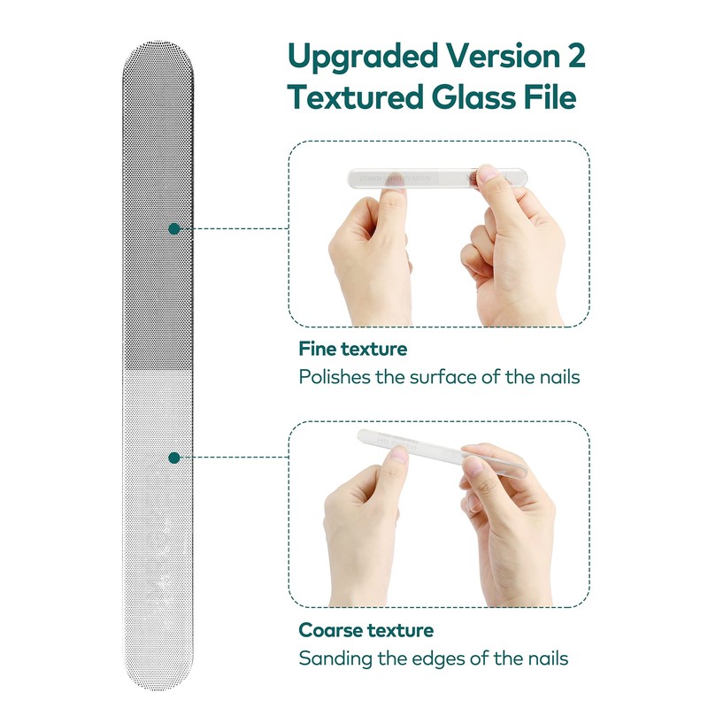 • Múltiples usos: el esmalte de uñas de cristal nano es adecuado para todo tipo de uñas, ya sea que tengas uñas redondas o uñas ásperas y gruesas, puede alisar las puntas de las uñas y pulir la superficie de las uñas fácilmente.