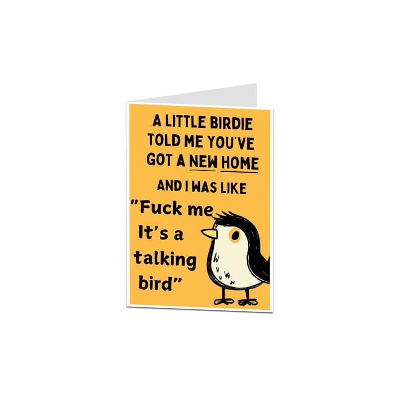 - A MEMORABLE WAY TO SAY CONGRATS đ â If youâre after new home cards UK, this happy new home card stands out with its hilarious message. Ideal for housewarming parties, moving in gifts, or simply celebrating a fresh start!