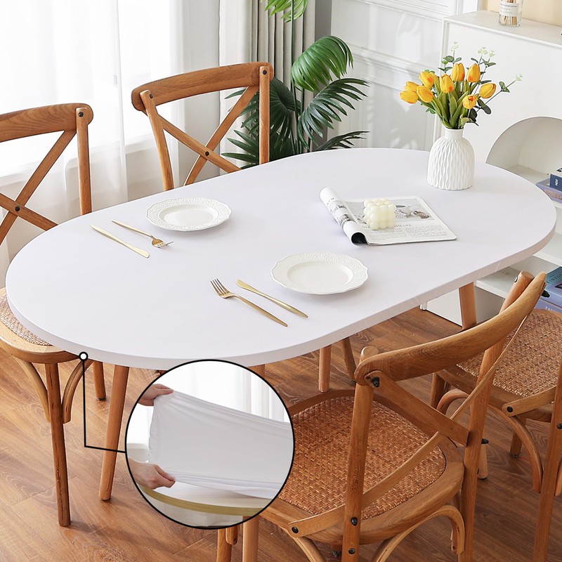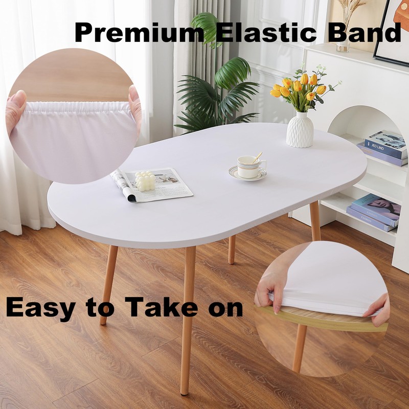 - ELASTIC SIZE: Perfect for oval dining table up to 48 x 68 inches, this soft, stretchy spandex tablecloth adapts to table up to 2 inches thick while maintaining a smooth, fitted look