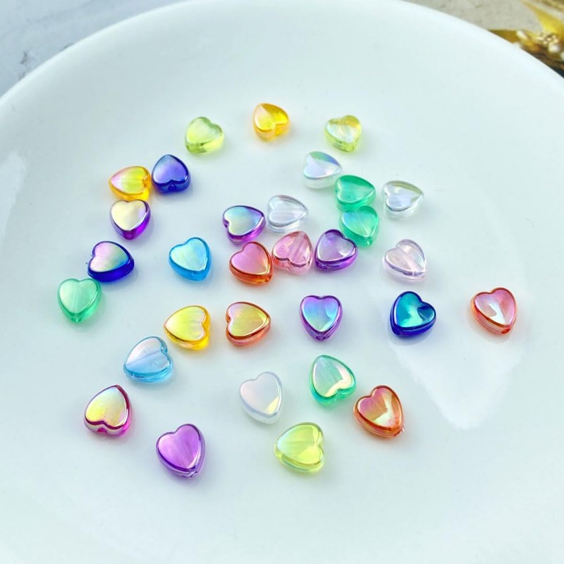 - Material: The heart shape beads are made of acrylic material.The surface of the beads has an AB coating, which shines brightly, lightweight and dazzling, make your DIY item more shiny and beautiful, use your imagination to connect these colorful heart beads together, make your unique jewelry and ornament