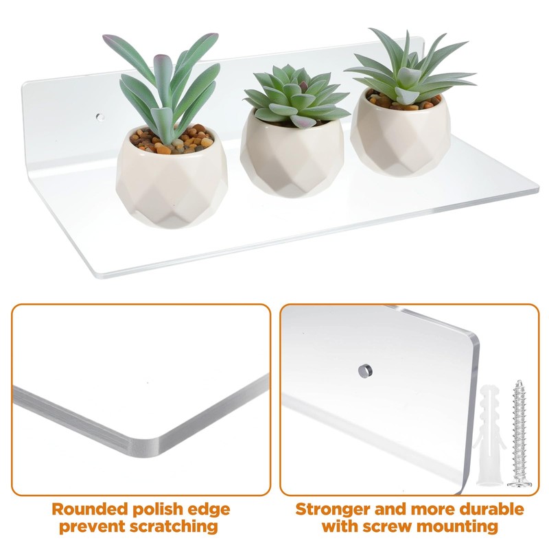 - Unique L-shaped Design: The L-shaped acrylic floating shelf features a distinctive design that adds a touch of elegance to any space; It provides a modern and minimalist look while showcasing your items