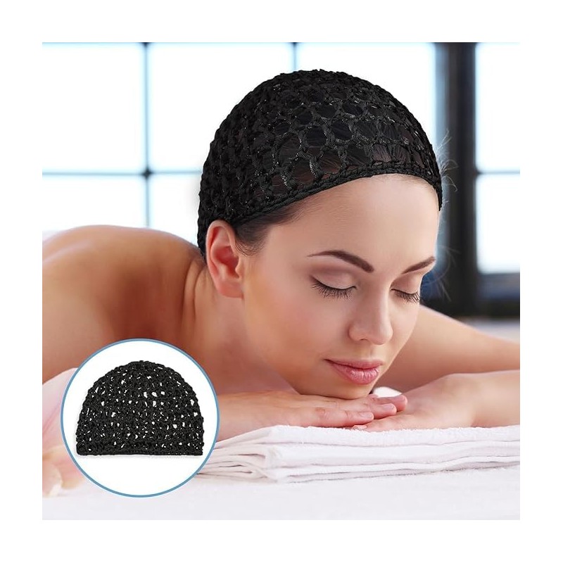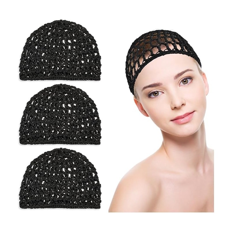 LimCryspp 3 piezas de Red de Pelo de Ganchillo,Red para Envolver el Cabello, Malla para Envolver el Cabello, Gorra de Dormir Suave Reutilizable para Mujeres, Envoltura de Pelo para Dormir, Seda (negro)