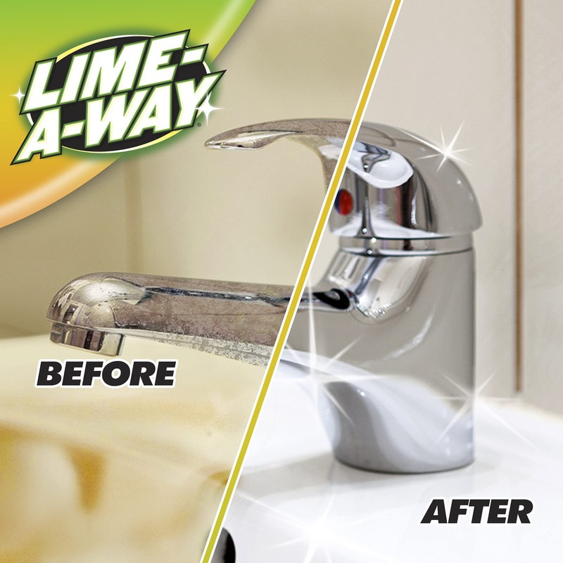 Lime-A-Way cleaner with Turbo Power destroys lime, calcium and rust stains caused by the natural minerals in your water. It effectively cleans the toughest hard water build-up so that surfaces stay cleaner for longer. Your toughest limescale will be removed in seconds without scrubbing! Good for use on: Sinks & Fixtures, Tub & Tile, and Shower & Glass.