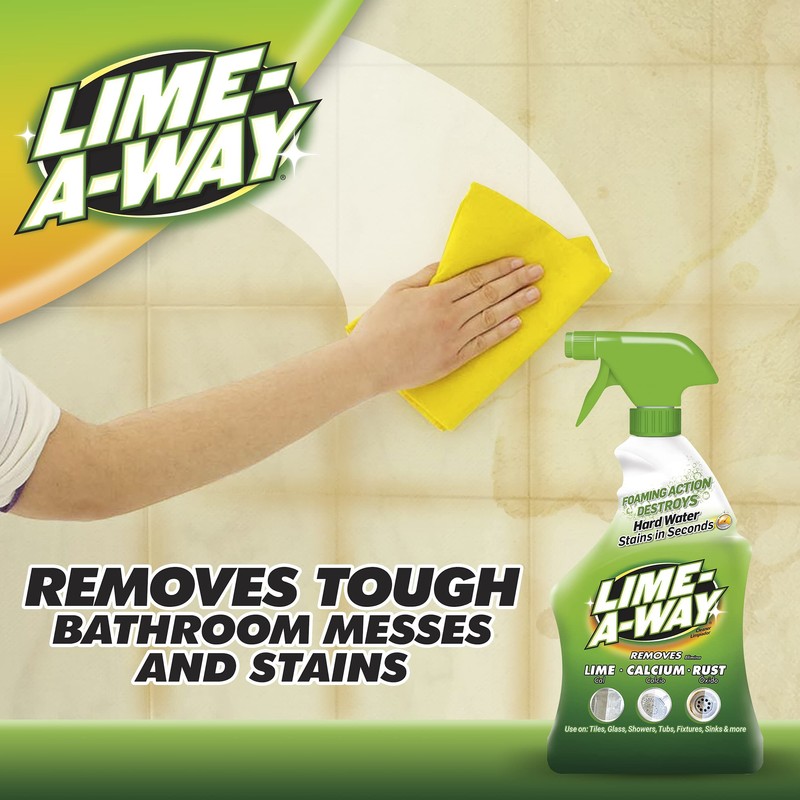 Lime-A-Way cleaner with Turbo Power destroys lime, calcium and rust stains caused by the natural minerals in your water. It effectively cleans the toughest hard water build-up so that surfaces stay cleaner for longer. Your toughest limescale will be removed in seconds without scrubbing! Good for use on: Sinks & Fixtures, Tub & Tile, and Shower & Glass.